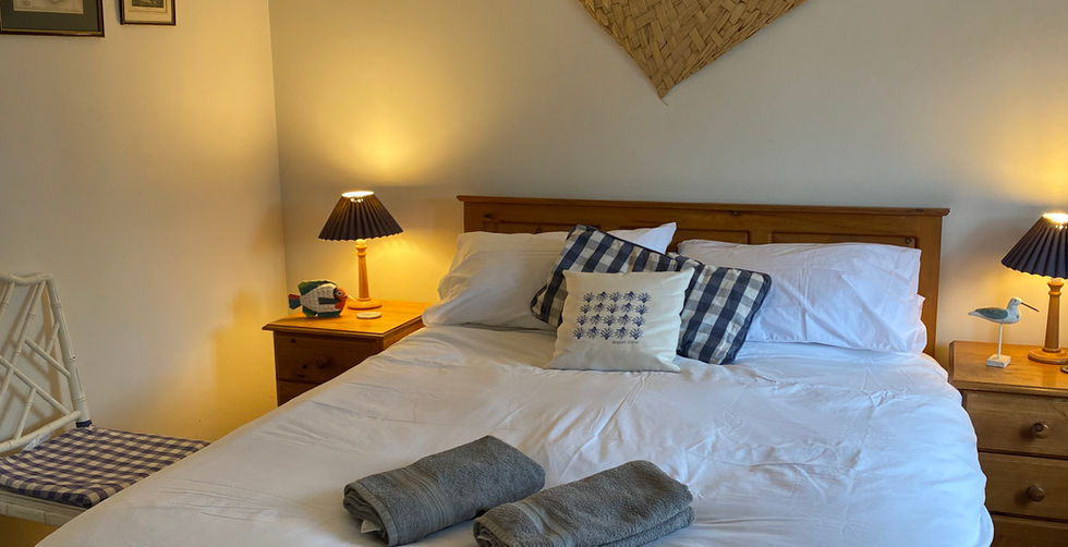 The house has three bedrooms (a double ensuite, twin and single bed room), family bathroom, open plan kitchen, dining and separate sitting room. There is a sunny garden with dining table.