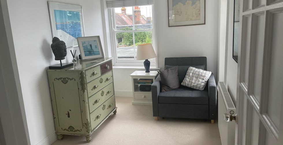 The flat has two bedrooms (double and twin), large sitting room with wonderful coastal views, dining room, bathroom, study, cloakroom and galley kitchen.